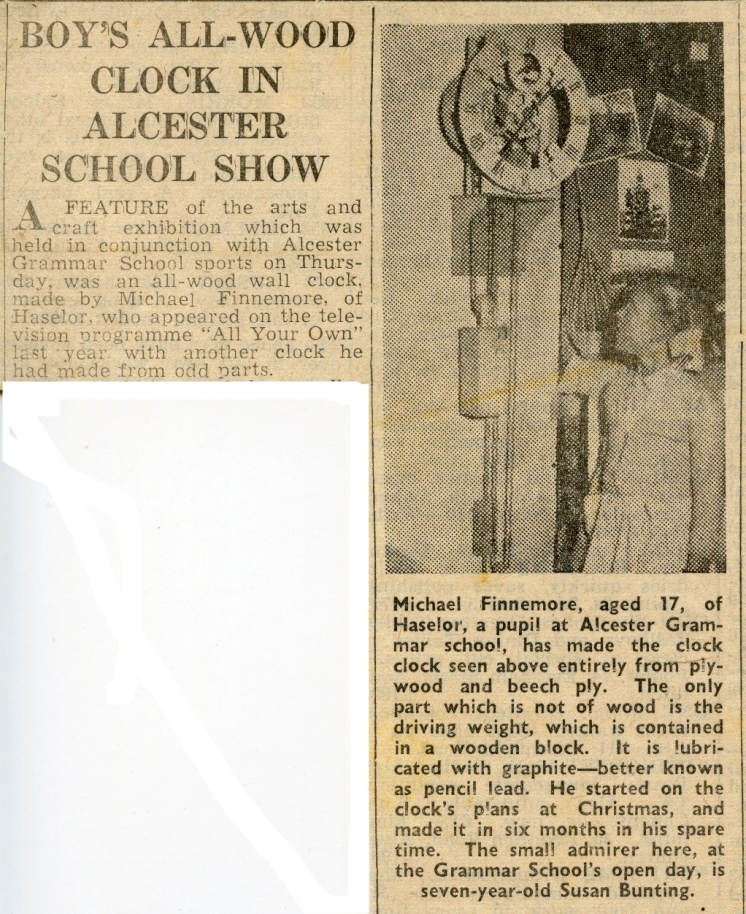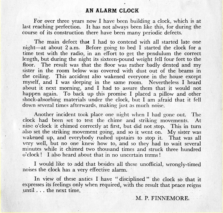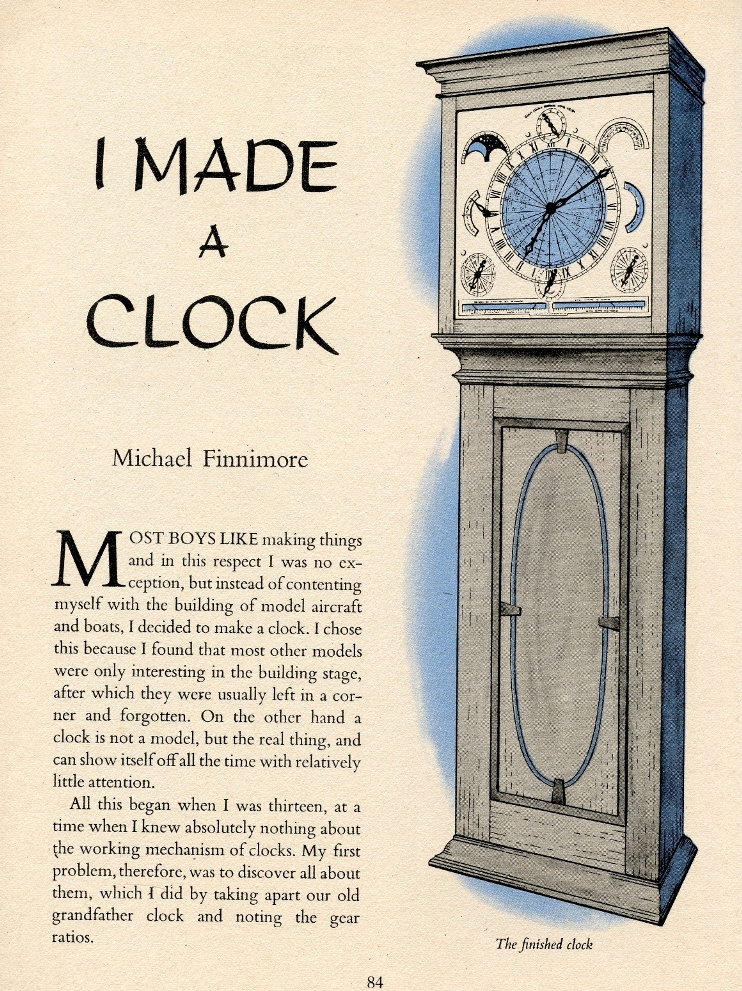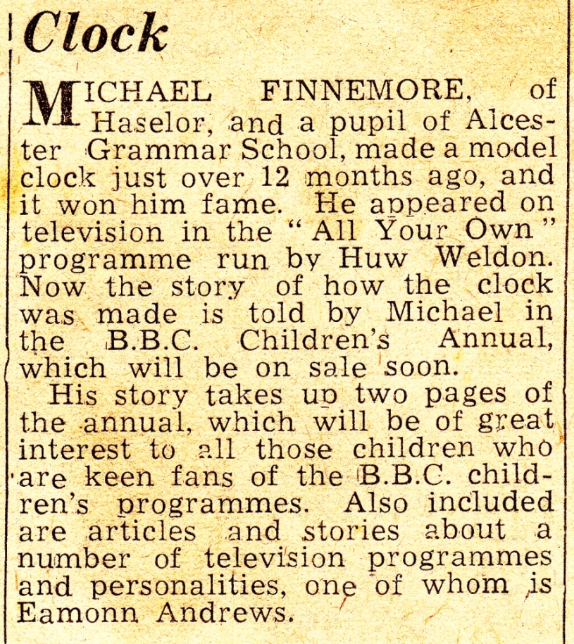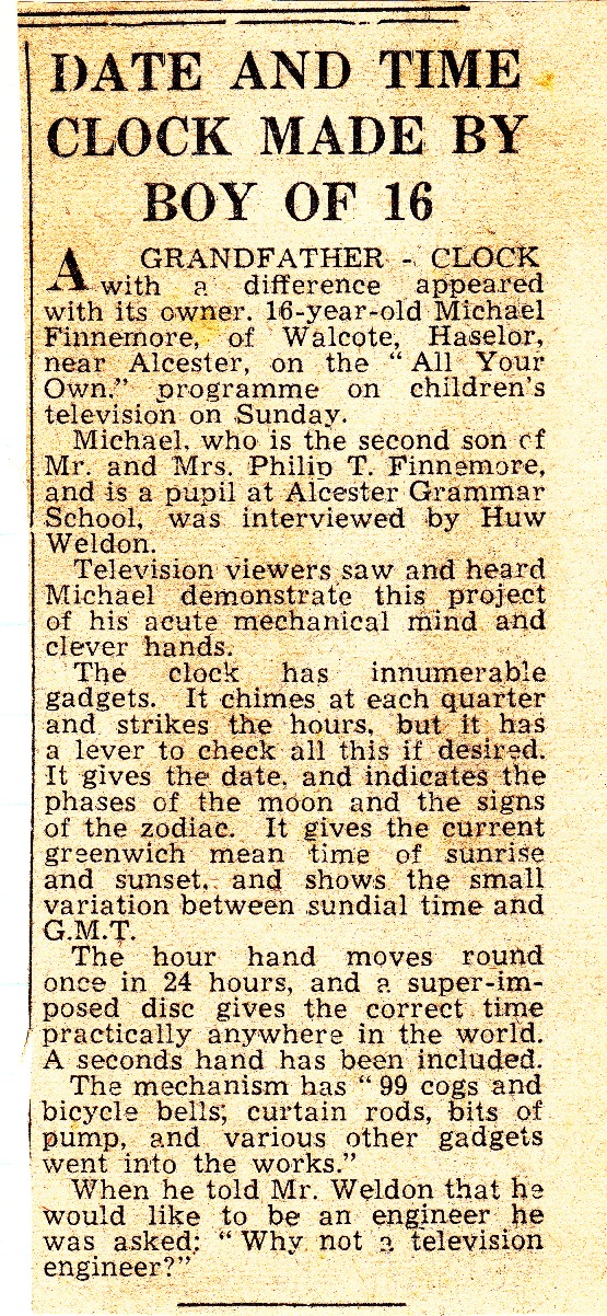 I MADE A CLOCK By Michael Finnemore Featured on a BBC live television show called "All Your Own" with Huw Weldon. May 1st 1955. |
