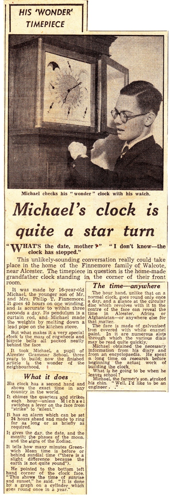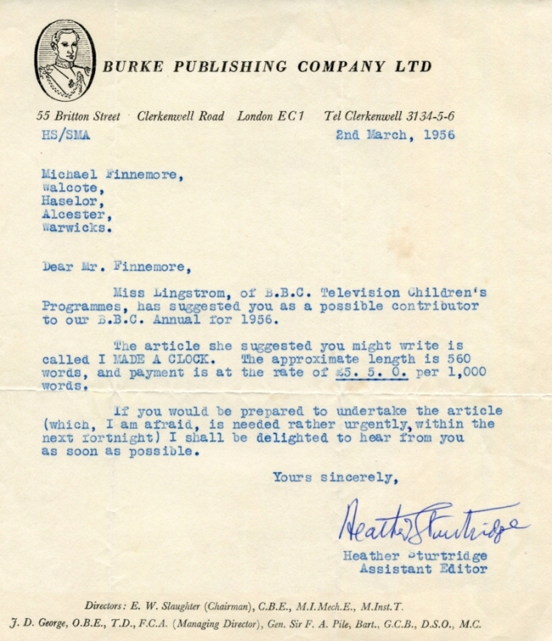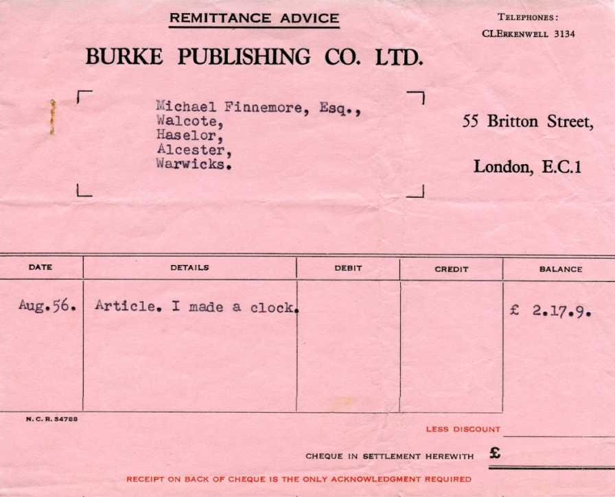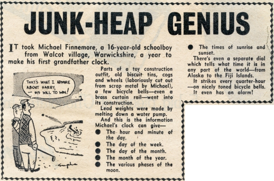 I MADE A CLOCK By Michael Finnemore Featured on a BBC live television show called "All Your Own" with Huw Weldon. May 1st 1955. |