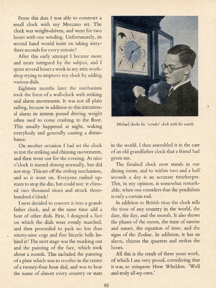 | This Meccano clock was a sensation and still ticking after 60+ years. | |||