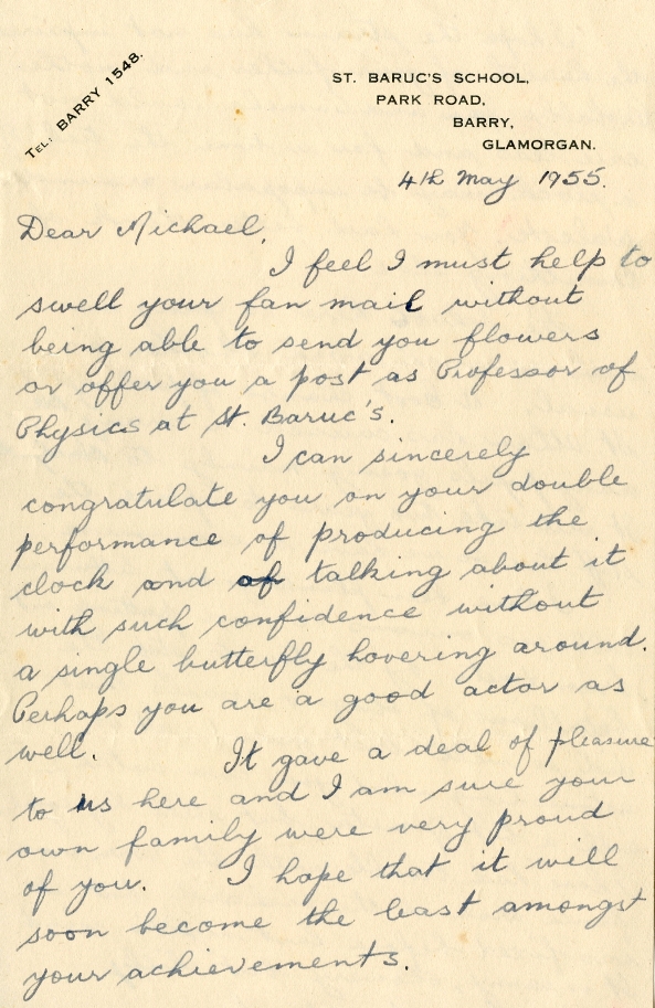 Mrs Harrison at Alcester Grammar School wrote to the BBC about Michael’s