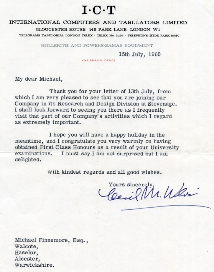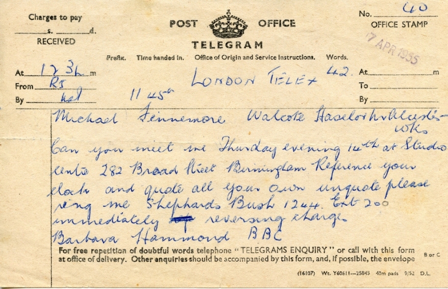 clock and 3 weeks later a telegram arrived. Dated 7th April 1955.