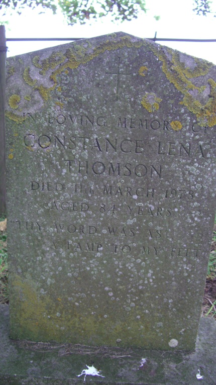 In loving memory of Constance Lena THOMSON, died 11th March 1978, aged 84 years. "Thy word was as a lamp to my feet."
