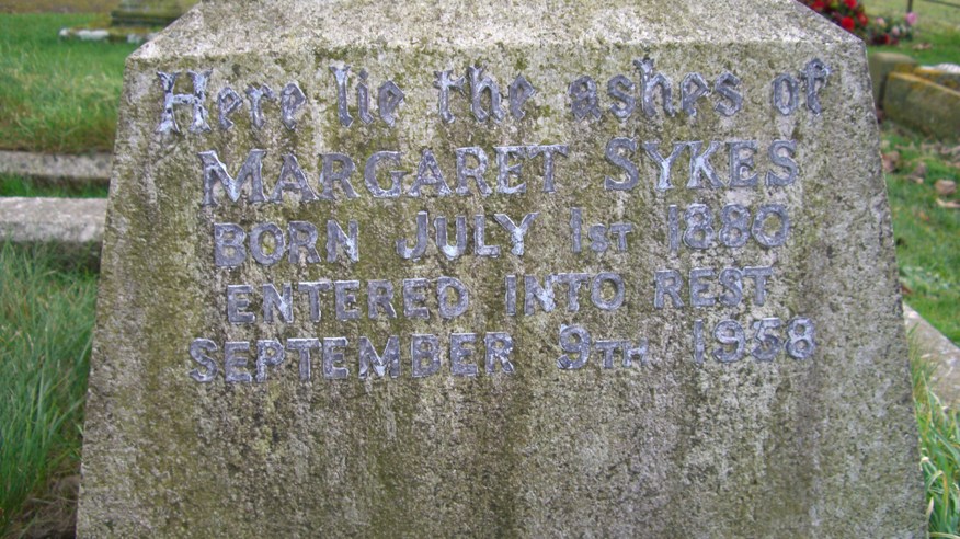 Here lie the ashes of Margaret SYKES, born July 1st 1880.