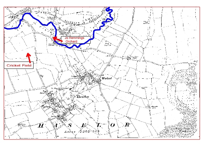 The cricket pitch was in the field where the stables are in Pelham Lane. |