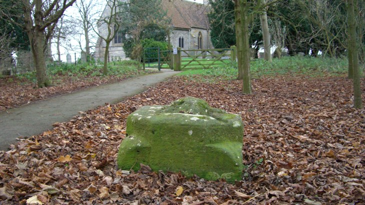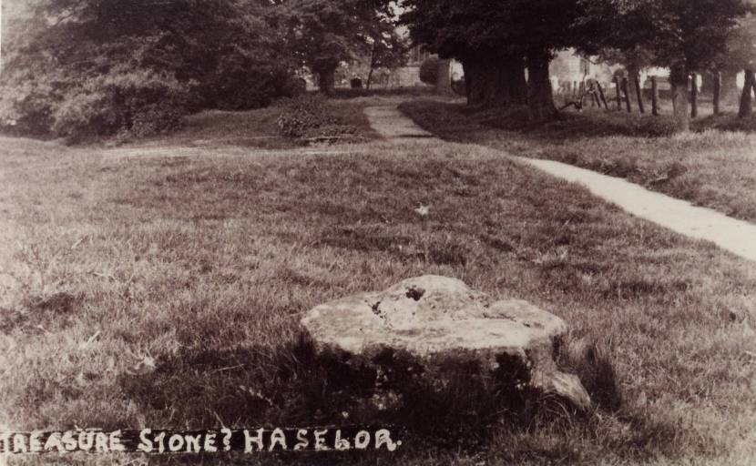 This is the stone which was called "Old Money Stone" or "Treasure Stone", and featured in childhood fantasies, situated just outside the now enclosed church path. It was moved to its present position, early 1970's. | |||
