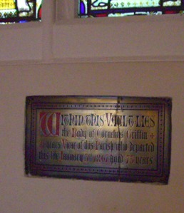 Within this Vault lies the Body of Cornelius Griffin. 21 years Vicar of this Parish who departed this life January 3rd 1867 aged 73 years | ||