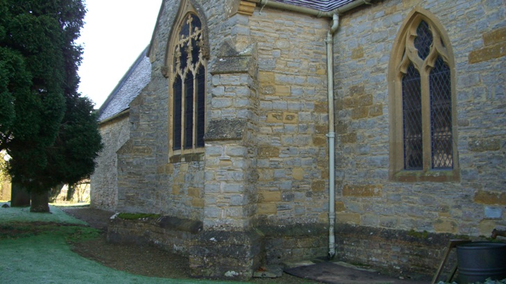 He always expressed a wish to be buried in church, but by the time his strange ministry came to an end, a law had been passed forbidding interment in churches. However, the resourceful Griffin had made his plans, and one can see to this day the place where, according to his instructions, he was pushed in from outside through an alcove under the north window, and where his name is engraved on the stone in the wall. My eldest sister who played the organ and practised during the week declared she could always smell ‘old Griffin’ when she passed up or down the aisle. Perhaps this was not a mere flight of fancy, as my mother, soon after going to Haselor, took a Colonel and Mrs Childs to look at the church, and all exclaimed at the unpleasant smell. Upon recounting the incident to various parishioners my mother was assured that it was undoubtedly the corpse of the previous vicar making itself felt. | |||