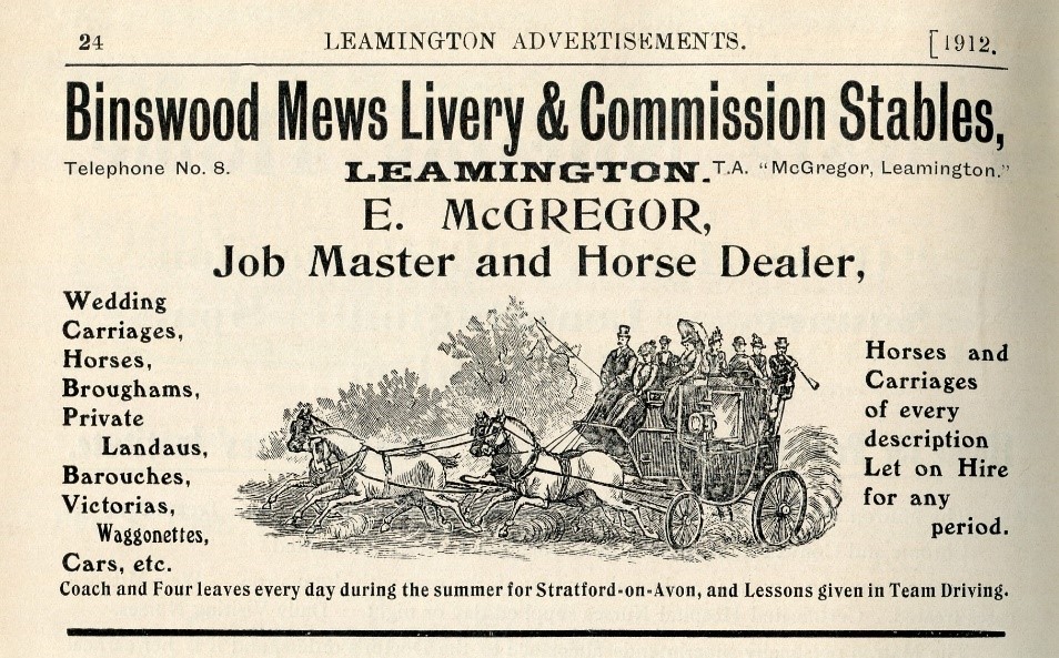 driving by McGregor, our coachman, the largest horse owner in Leamington”,