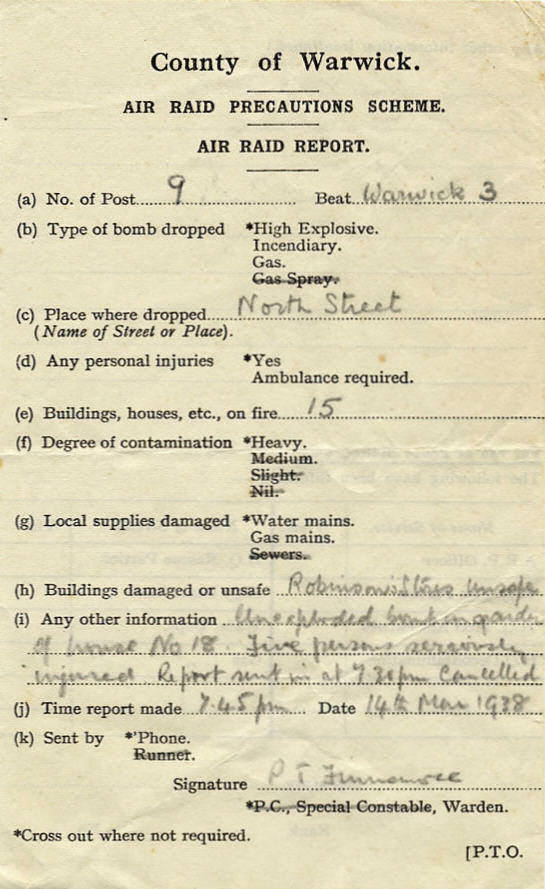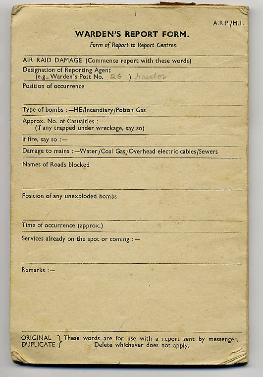 My father, Philip Finnemore used this pad of Warden's Report Forms to fill in reports of incendiary bombs that dropped in Walcote. |