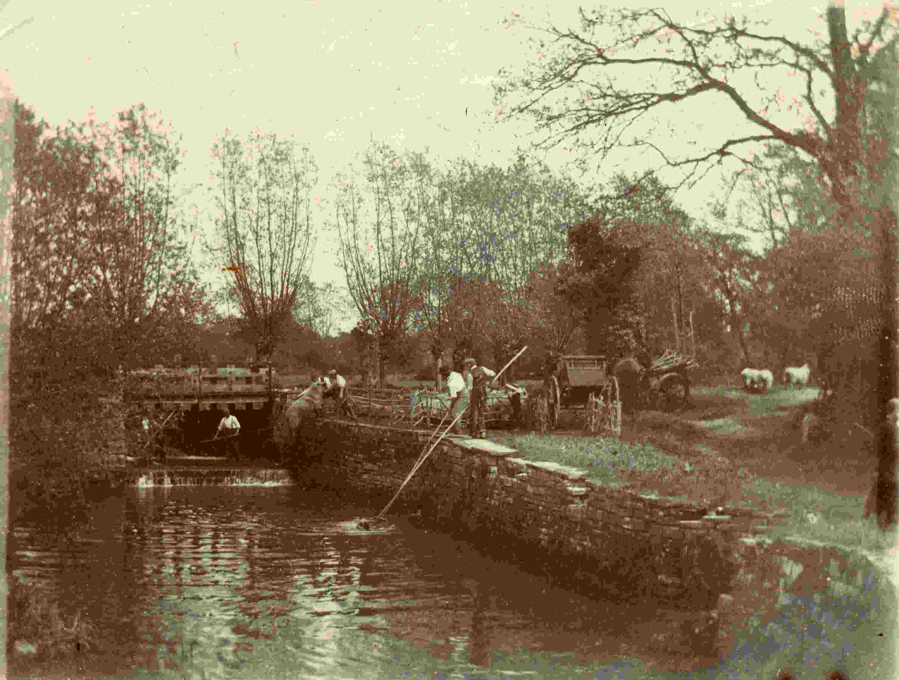 Note the bridle road before the weir was built. The river is now too deep to cross at that point. You can still see exactly where the bridle road went from the road to the river. Do make a point of looking! |