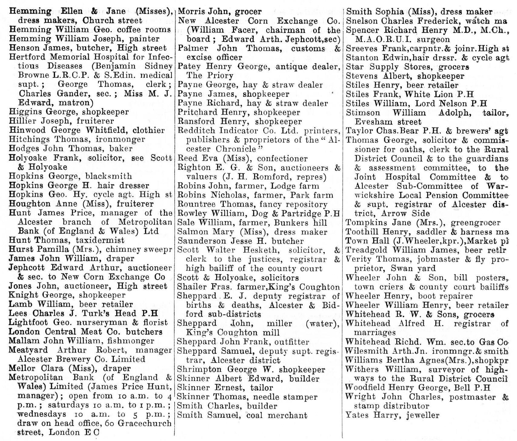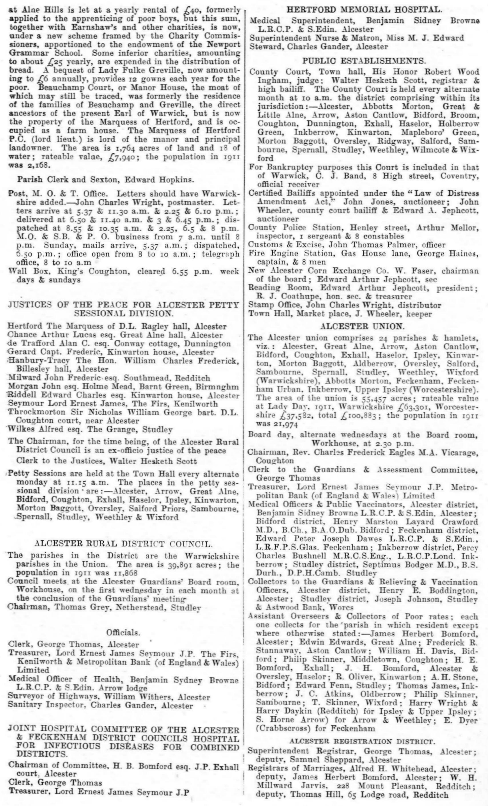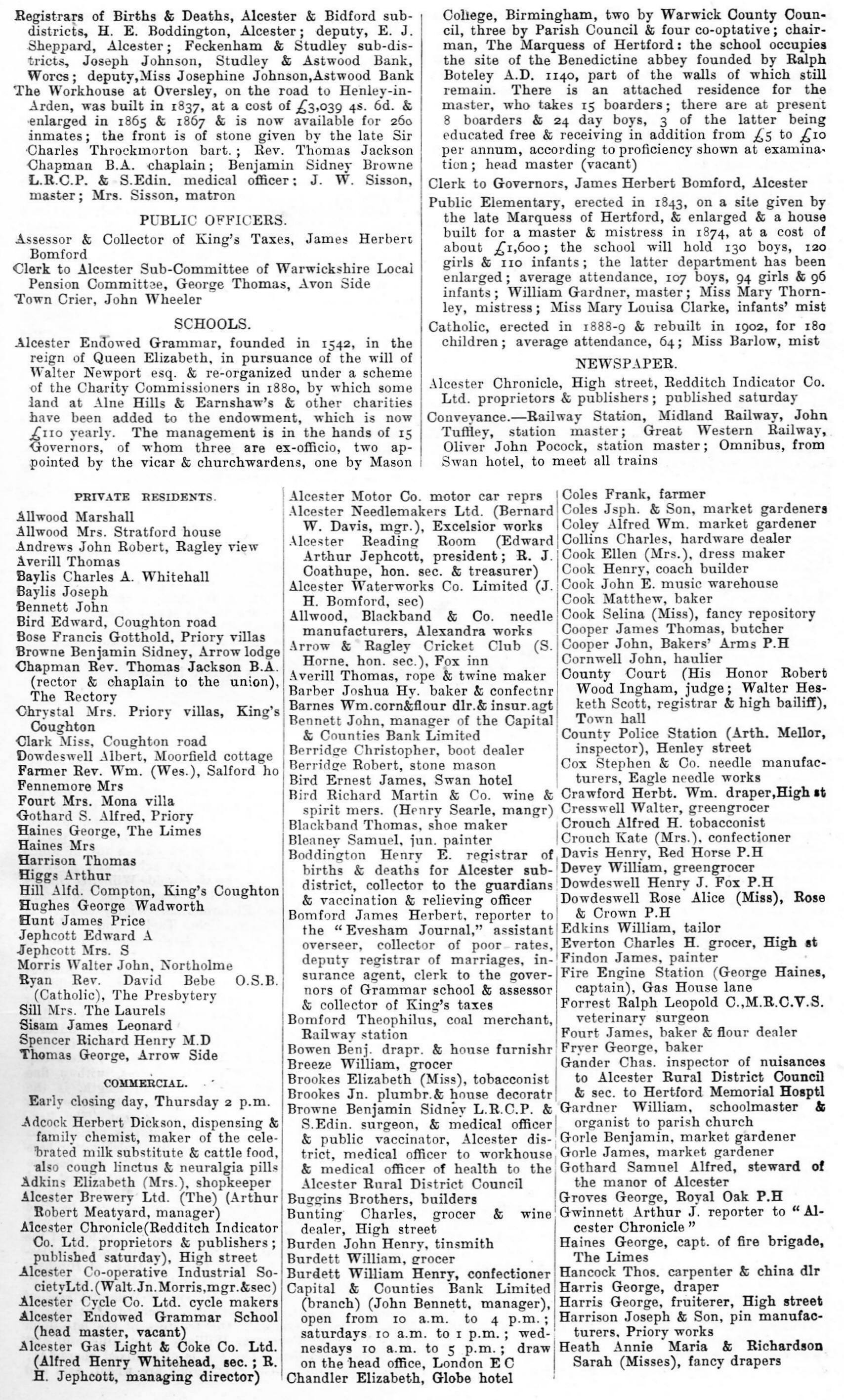 KELLY'S DIRECTORY OF WARWICKSHIRE 1912