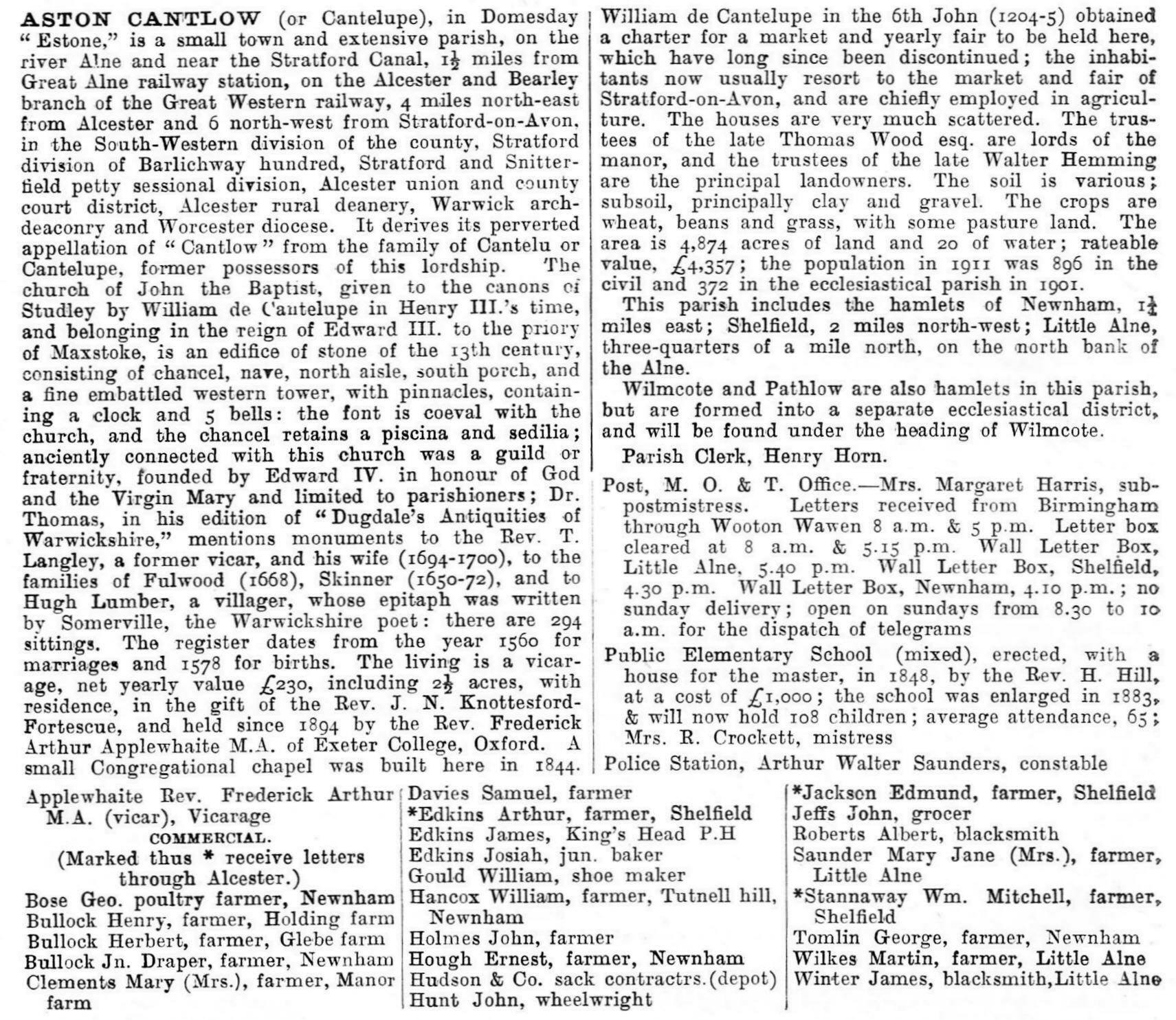 KELLY'S DIRECTORY OF WARWICKSHIRE 1912