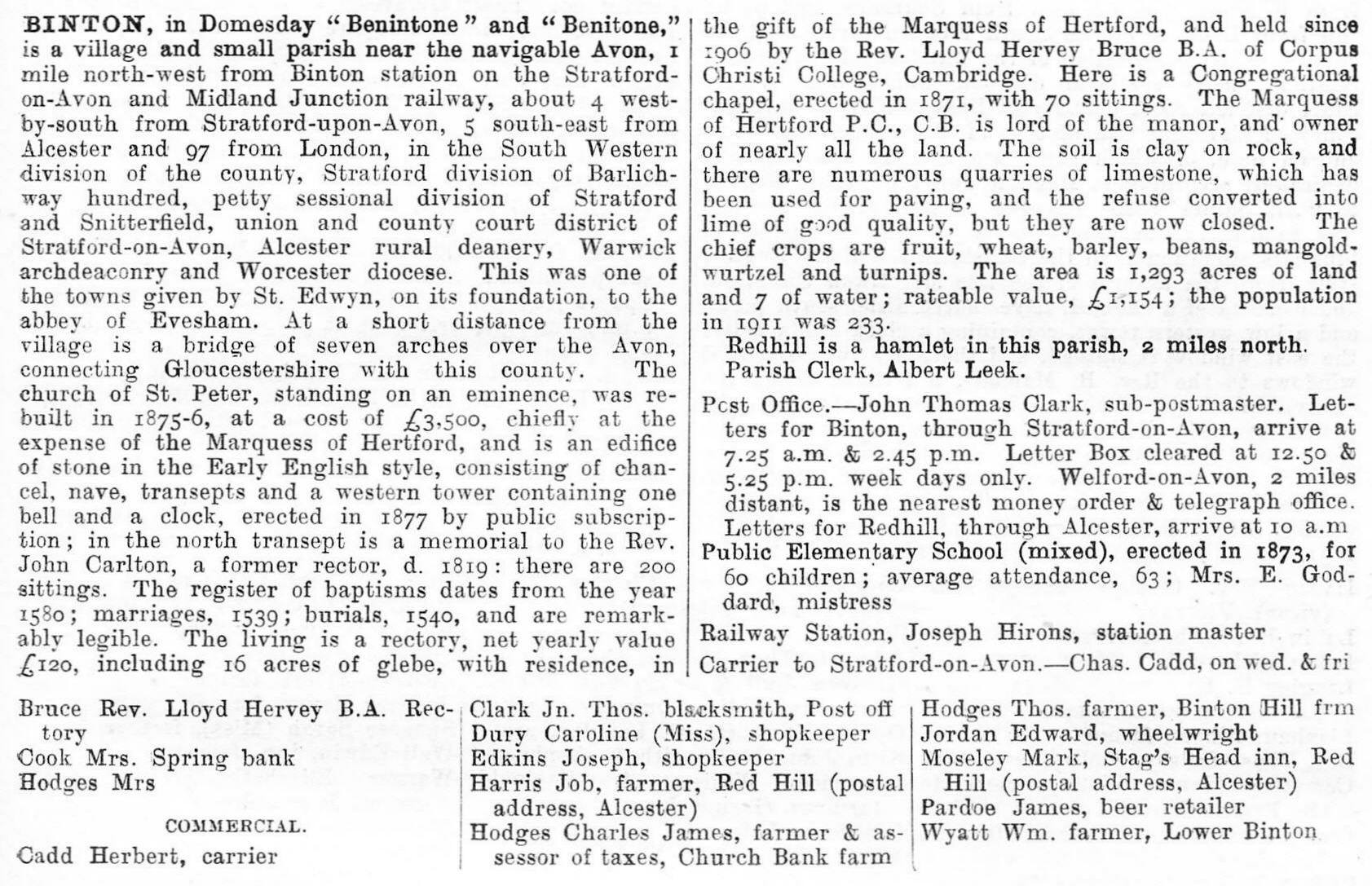 KELLY'S DIRECTORY OF WARWICKSHIRE 1912