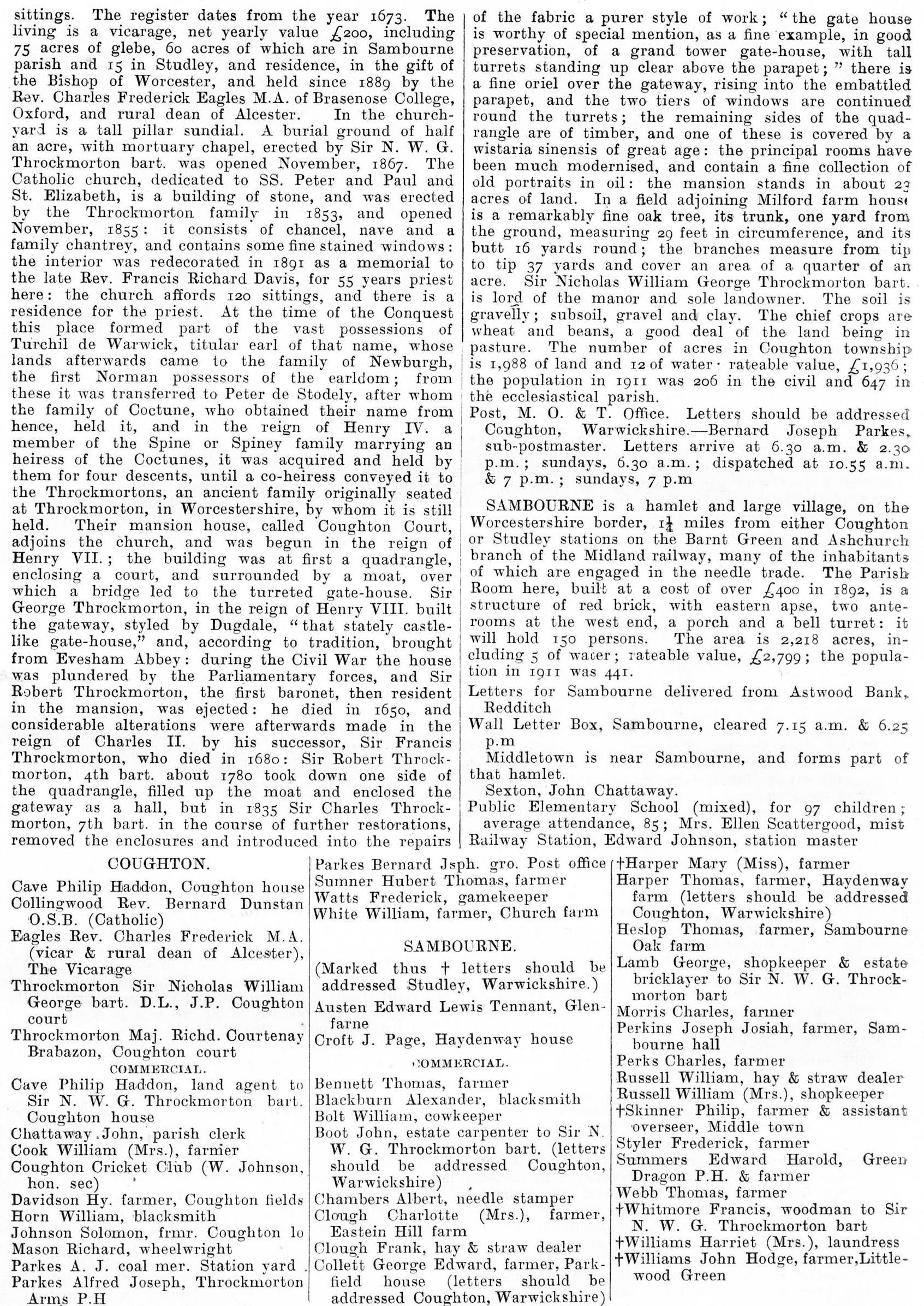 KELLY'S DIRECTORY OF WARWICKSHIRE 1912