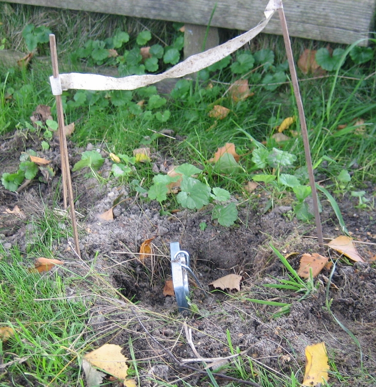 Attachments Just for fun I want to share my experience in mole trapping with you. All trapping is done on an area of one acre with Talpex design traps of which you say you have no experience with. In July 2010 I bought a small farm in a wetland reserve in The Netherlands. Really low land with a lot of water around. The whole place was infested with mole activity. The surrounding area consists of wet grass land and reed land. The surface level is at about +30 cm (12 inch) above groundwater. After heavy rain these surrounding lands have a groundwater depth of almost zero. So the moles cannot dig deep and after heavy rain have to retreat to the elevated places. I suppose they concentrate resting/nesting etc. in the elevated area’s. In 2 months I have trapped 30 moles which were living and digging on an area of about 4000 square meter (3400 square yard). A much higher mole density than you describe on your website. I suppose wet moor land has a very high number of worms per square meter, much higher than sand or clay soil. Mostly I see worms coming up indeed when hammering on the T-handle to prepare a hole.