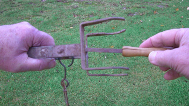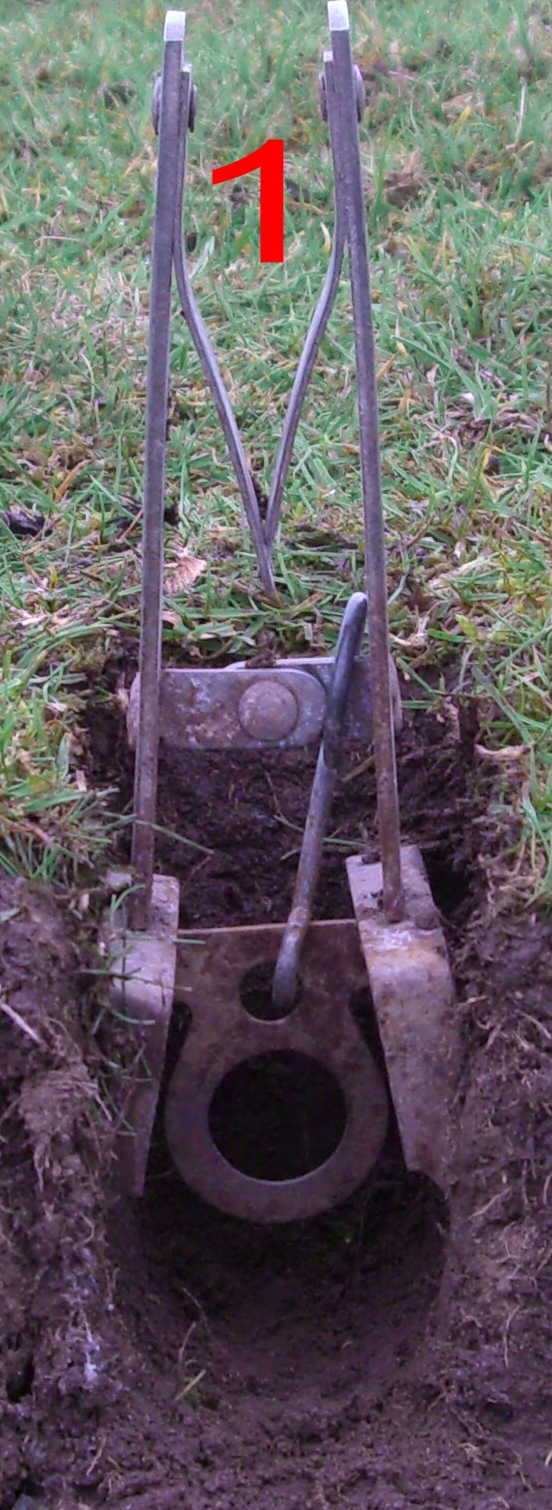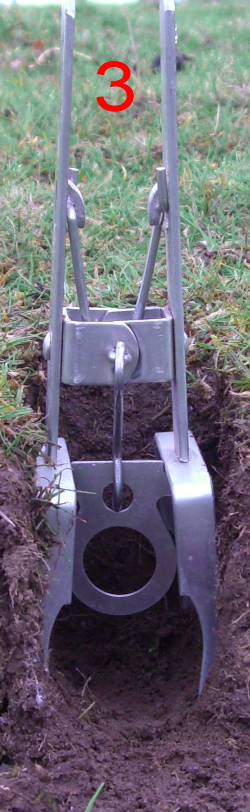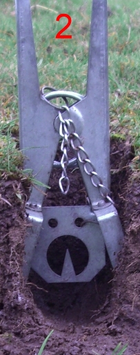 Trap 4. Borrowed from a neighbour as a challenge to see if I could catch moles with it, and was surprised when I found it very easy. It is all to do, on how the trap is positioned in the mole run, which is different from the other three traps. Latest Update:- The trap on the right has now been superseded with longer legs. |