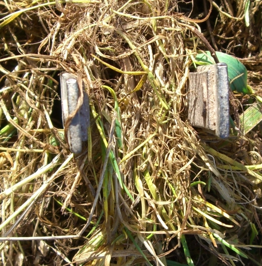 Soft matted grass for use in setting the trap. Soft matted grass can often be pulled up from near where the trap is going to be set, otherwise I have to find some from elsewhere. | |