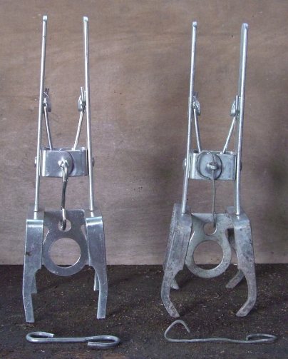Eliza Tinsley Trap, No. 1402 Trap, English Scissor Trap, Scissor Type Mole Trap or traps that have different names that look exactly like the trap on the left is the best buy compared with the Defenders trap on the right. |