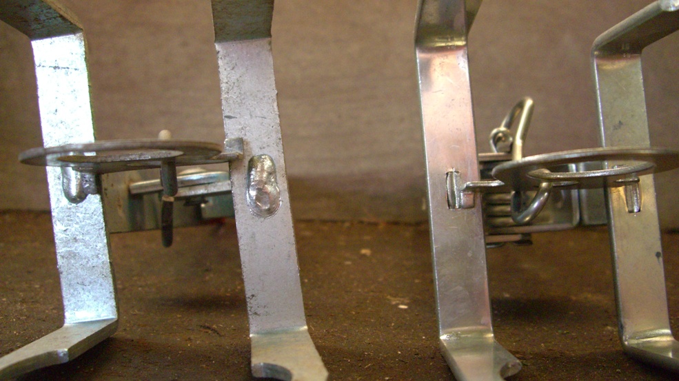 The picture above corresponds with the picture below. Note the trap on the left shows that the handles have been welded and the trap on the right shows they have not been welded. |