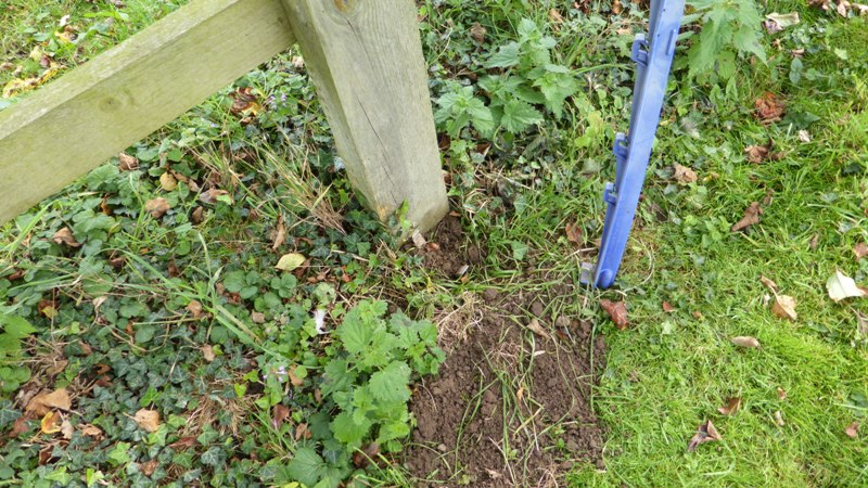 There were no visible molehills, anywhere near this fence post, when I found a mole run. | ||||