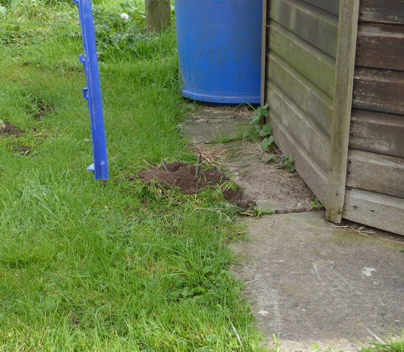 This will give you some idea that moles can be caught in all sorts of places. Having a probe, long enough that you do not have to bend down is essential if you are going to find mole runs in many places where you do not see molehills. Prodding by a boundary fence post or long an edge of a path, drive, etc. is often an ideal place to set a trap. |