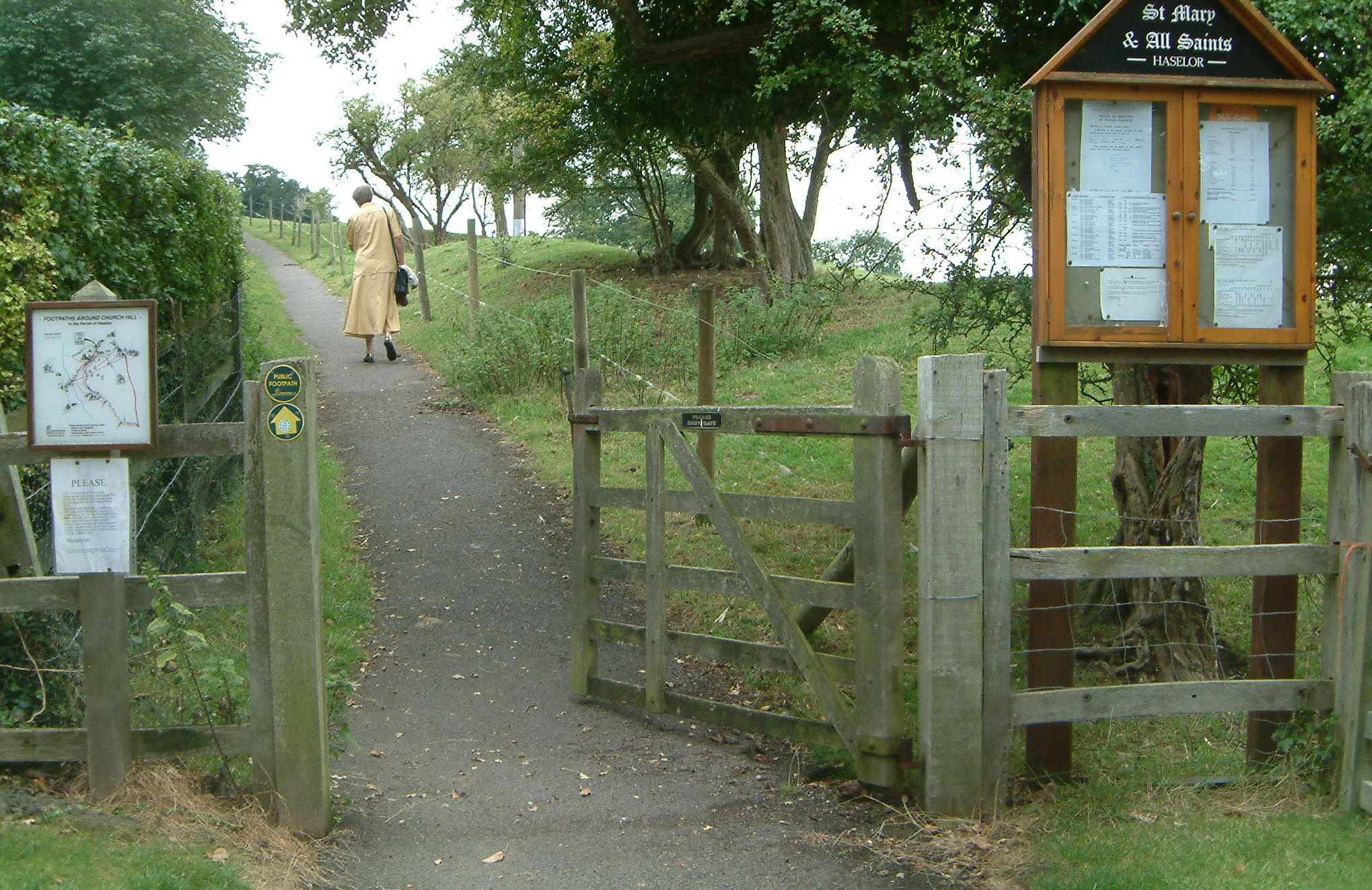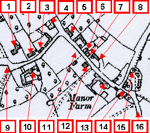 9. The Village Pound. The village pound was on the small piece of flat ground in the corner of the field, to the right of the church notice board. This is where stray animals were kept. An entry in the Court Records shows:- George Heminge of Haselor presented for rescuing of cattle that were going to the pound. Fine made in Trinity 1672 | 10. The Knoll. Farmhouse with 93 acres in 1767 belongs to John Heming. The land stretched from behind the house to Withycombe Wood. The O.S. map of 1887 shows that the farm buildings to the right, use to be joined up to The Knoll. | ||