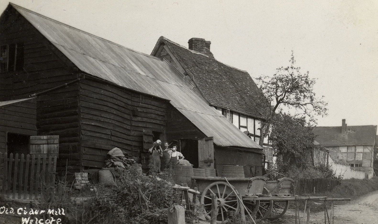 5. The Cider Mill. c1920. The wall in front of the mill, is where people from a wide area, came with their horse-drawn carts, unloaded their apples/pears and afterwards to take home their barrels of cider. Last used in 1947. | 6. Paul Pry Inn. c1920. Farmhouse and pub, which was then derelict. A garage to Paul Pry Cottage now stands on the site. The farm buildings to the left, now called Flaxhide, use to belong to Paul Pry Inn. | ||