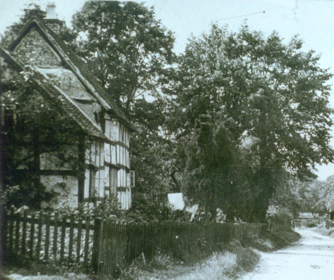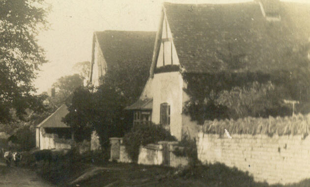 2. Cruck Cottage. c1946. In 1752, a farmhouse and a pub called "The Boot Inn". After 1767, it ceased to be a farmhouse and was converted into 3 cottages. In the early 1960’s it was one cottage and you can see where the other two front doors have been removed, by the shape of the windows. | ||