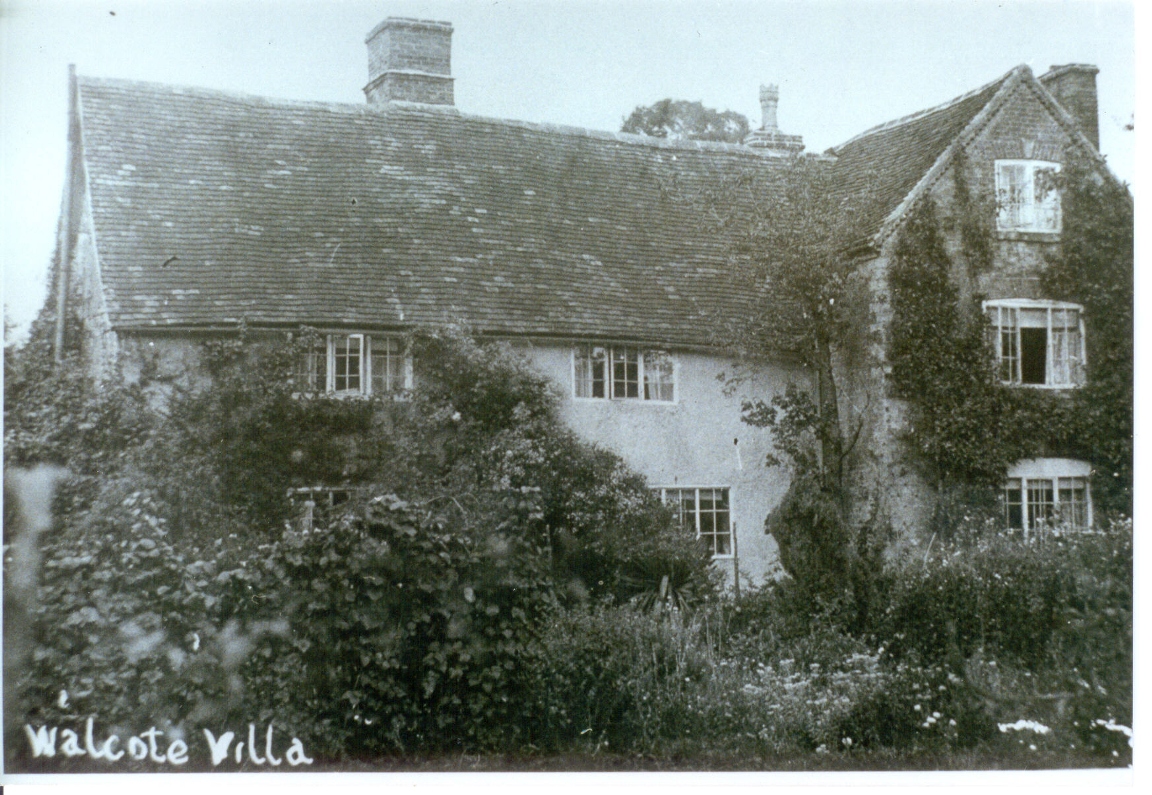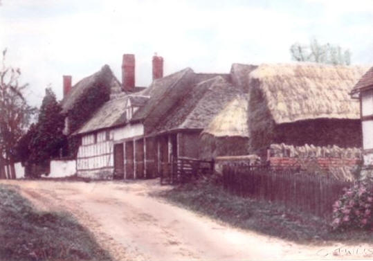 3. The Old Thatch Barn. The brick wall on the right of Cruck Cottage is where this old thatch barn stood. The stone wall, on the right of the gate, was the back of a shed with a thatch roof. | 4. Walcote Farm. c1920. Previous name "Walcote Villa". The room on the left-hand side was used as a school in the 1860's. A road, known as Walcott Street, use to go down the driveway, and join up to the road from Billesley to Great Alne. | ||
